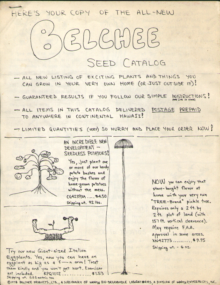 The Belchee seed catalog, page 1 (click to enlarge)The Belchee seed catalog, page 2 (click to enlarge)A picture of Paul taking a picture (click to enlarge)A bit of Pythonesque humor (click to enlarge)The gang “fixing” the car (click to enlarge)Putting the car on its side to work on the bottomThat was then… (click to enlarge)…then in 2001… (click to enlarge)…then in 2008… (click to enlarge)…and most recently in 2017 (click to enlarge)